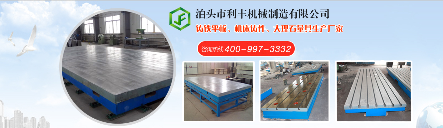 泊頭市利豐機械制造有限公司是生產(chǎn)工具,量具的單位,地處河北省泊頭市。我公司生產(chǎn)的鑄鐵平板、鑄鐵劃線平臺、機床鑄件、大理石量具等量具,具有設計合理、結(jié)構穩(wěn)定、使用壽命長等特點,廣泛用于機械加工、工具車間、裝配車間、機(檢)修車間、計量室及精密加工的檢驗、測量和研究。熱忱歡迎_兄弟廠家朋友前來我公司參觀考察合作,在互惠互利的基礎上,攜手共進,共圖發(fā)展。